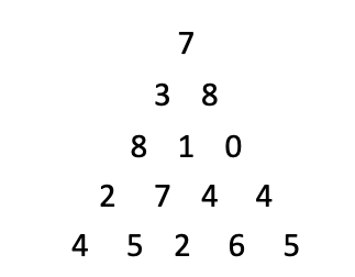 그 아래줄 역시 같은 논리로 더해주면 값을 더한 삼각형의 최종 모습은 아래의 이미지와 같을 것이다.