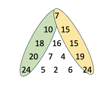 위 정수 삼각형에서 맨 위에 있는 꼭짓점인 7을 제외하면 삼각형에서 가장 밖에 있는 숫자는 동일한 변의 위에 있는 숫자와 더해질 수 밖에 없다.